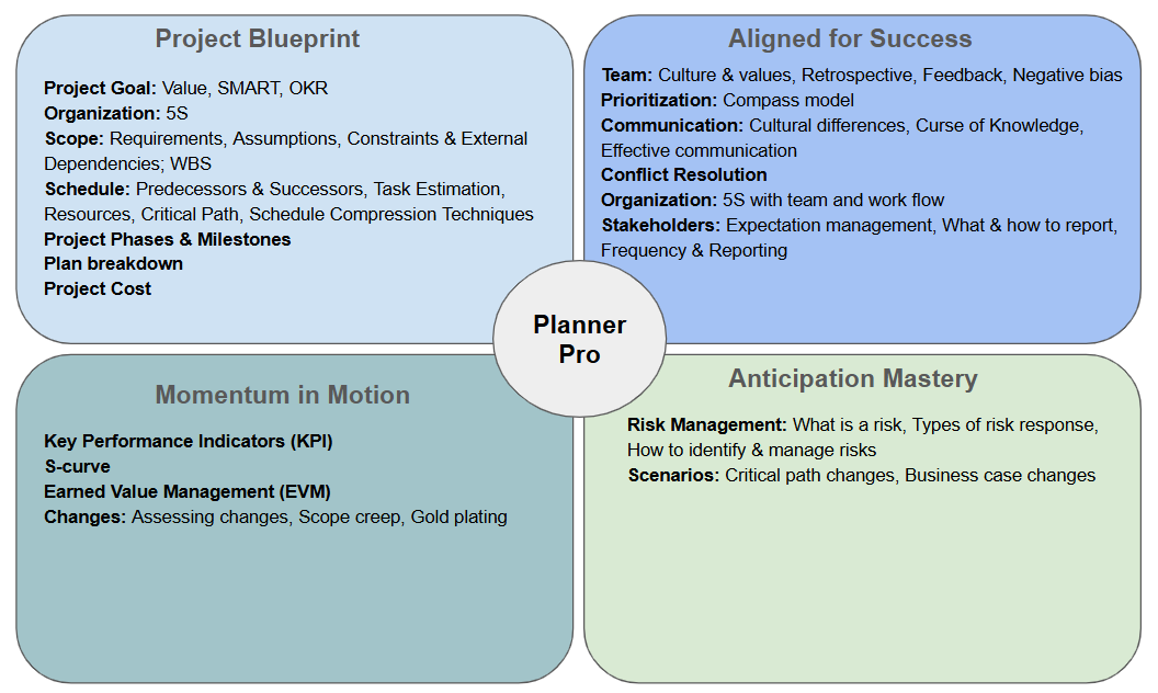 Confidently plan, execute, and manage projects while getting your team aligned and onboard to deliver successful projects using the Planner Pro Method.